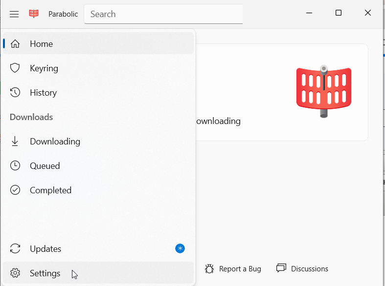 點Parabolic左上角的Settings → Language可以切換界面語言。