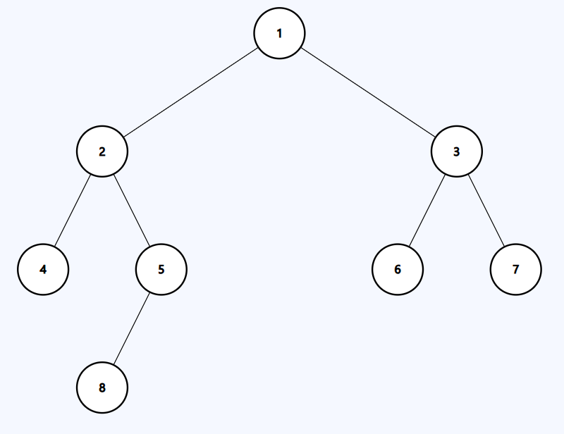 8,所以樹的第一層為 1;第二層為 2、3;第三層為 4、5、6、7;第四層因輸